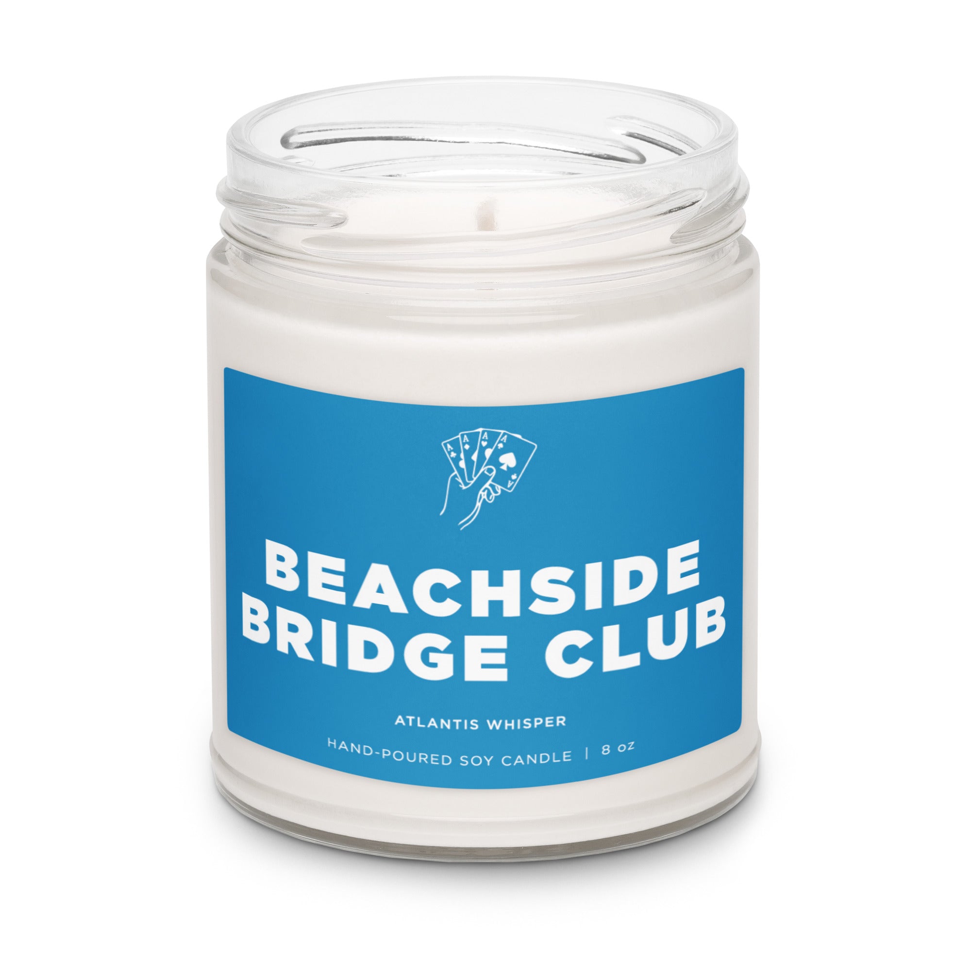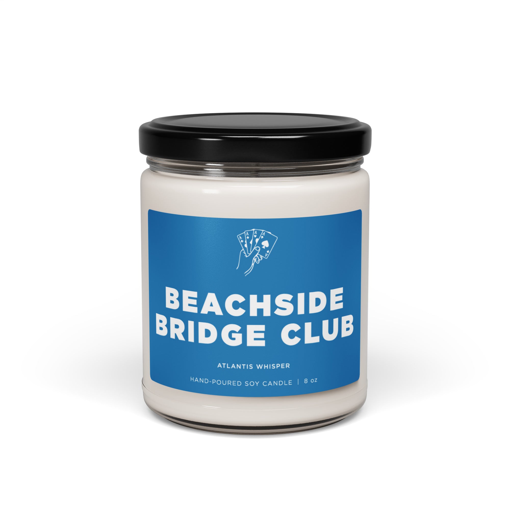 “Beachside Bridge Club” Scented Soy Candle — Sandalwood, Coastal Air & Dark Musk