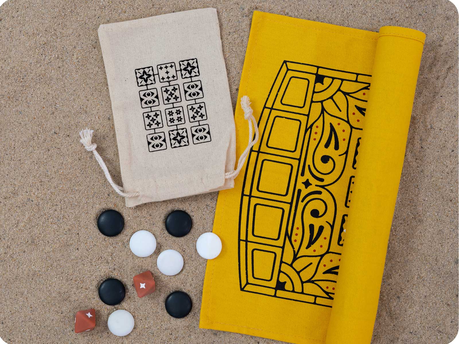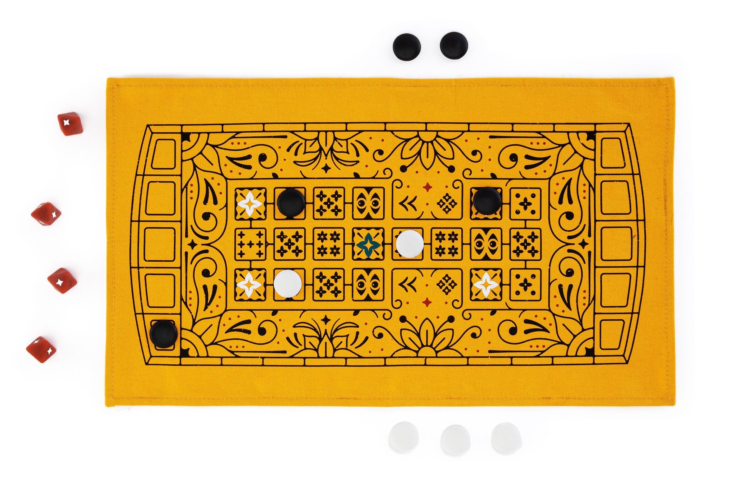 The Royal Game of Ur is a 2-player strategy game that dates back to 2600 BC. Players race to get their pieces through the board before their opponent. Each move offers unique decisions and opportunities to take on your challenger. Our version is simplified for quicker play times and includes a beautifully designed board screen printed on soft fabric along with a travel-friendly drawstring bag.