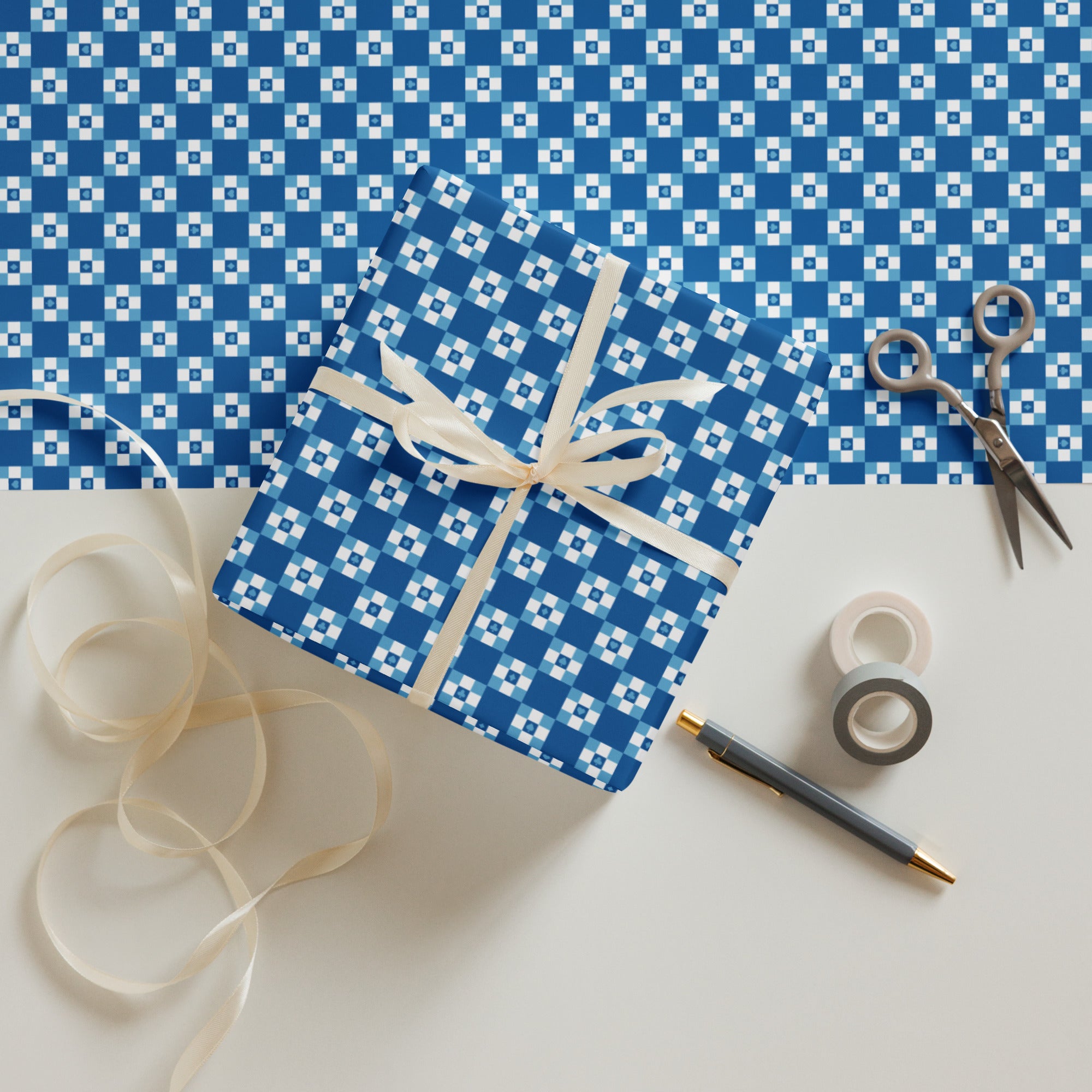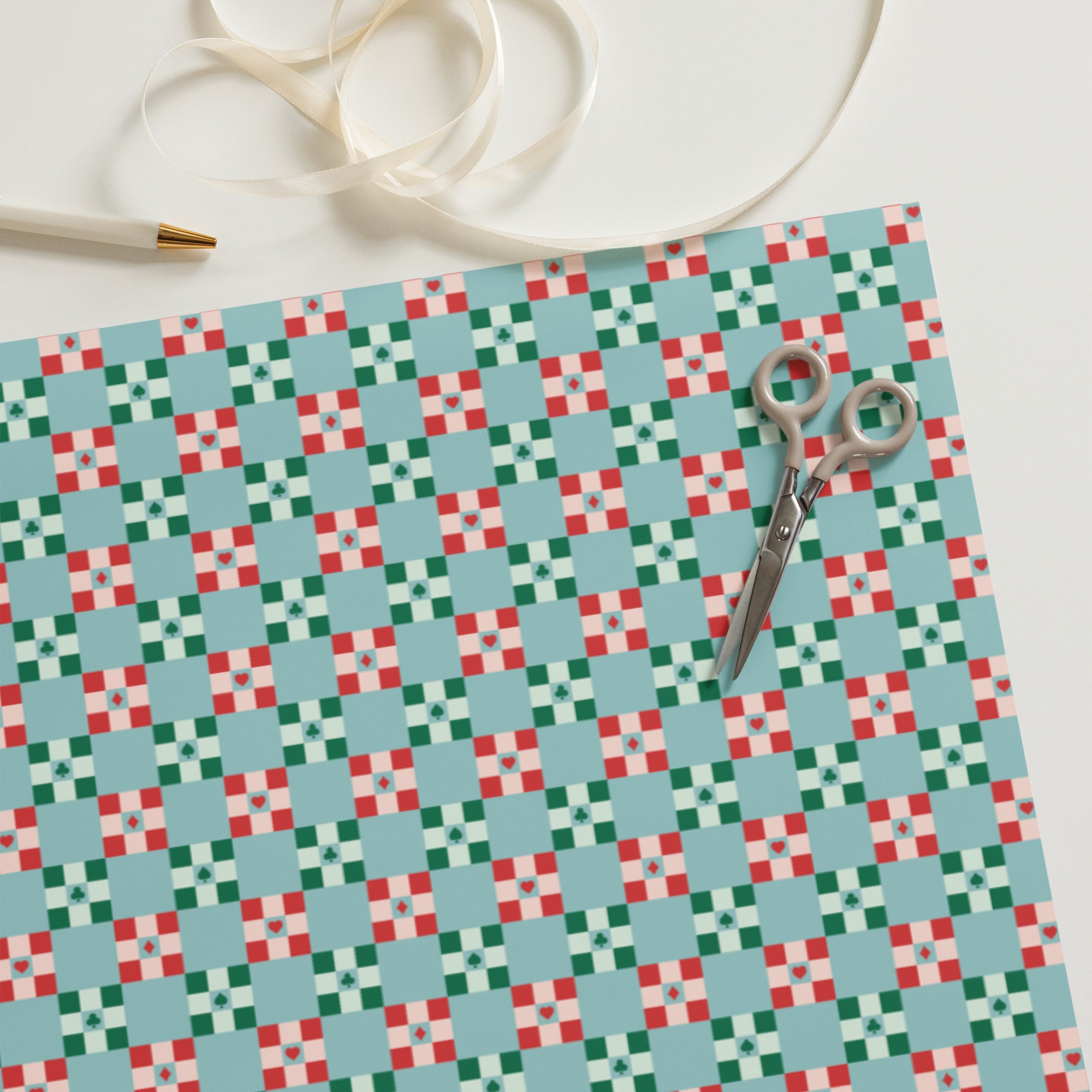 Dress gifts to impress with three thick, matte-finished sheets featuring our card-symbol checkerboard—elegant for every occasion.
