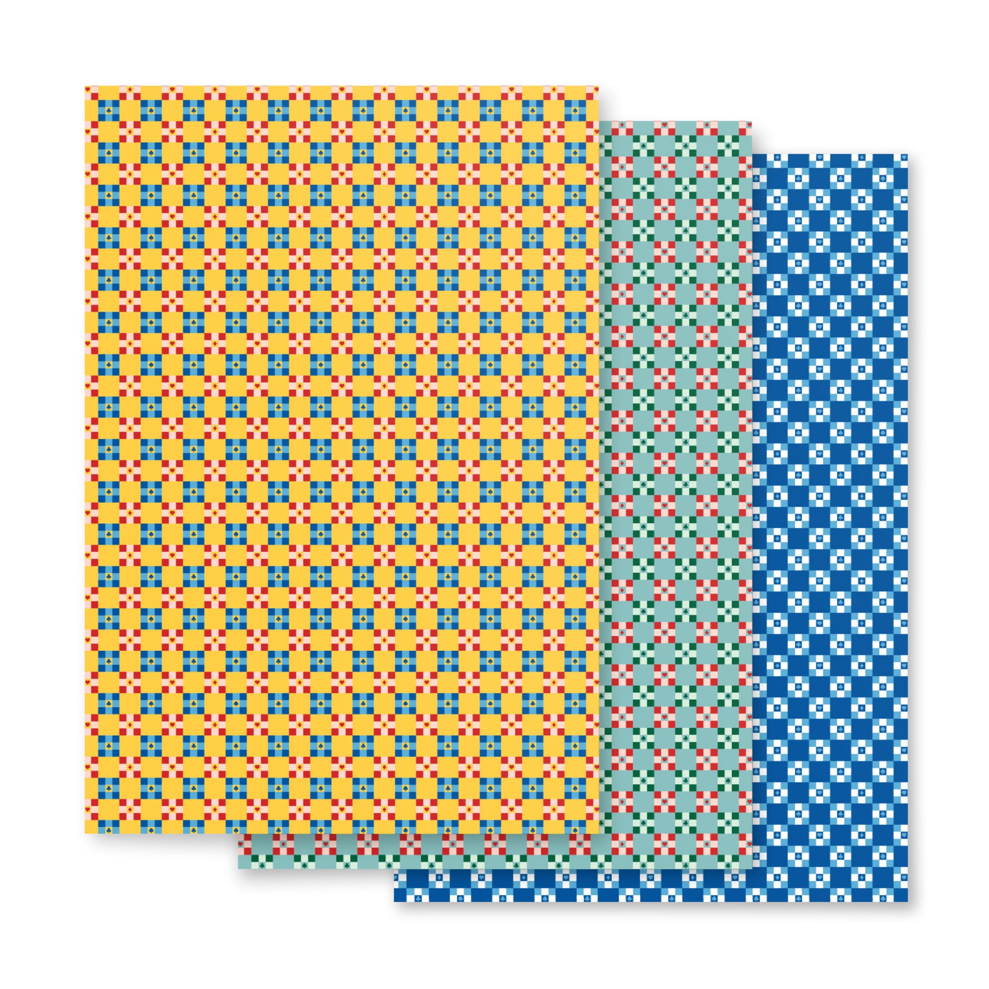 Card Symbol Checkerboard Wrapping Paper Sheets (Set of 3)